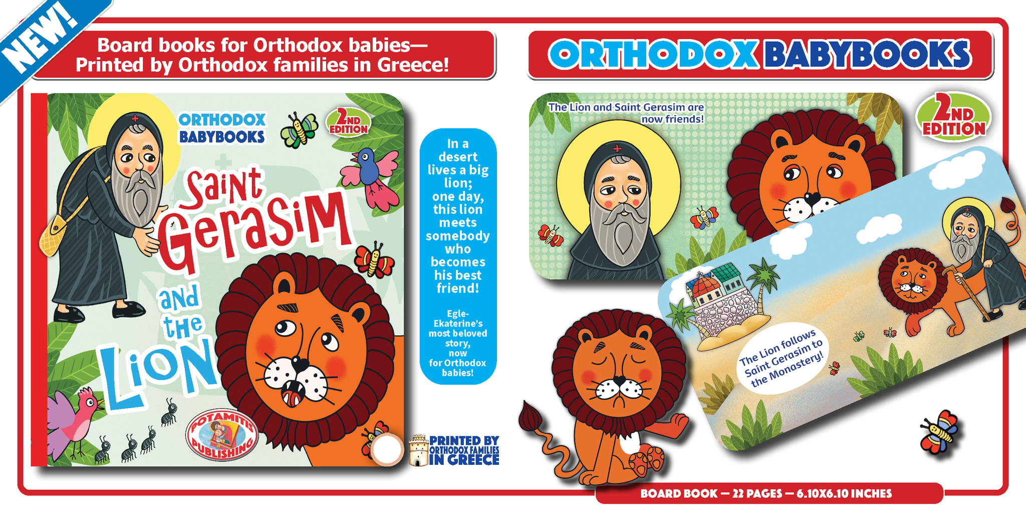 Ἡ ἱστορία τοῦ Ἁγίου Γερασίμου τοῦ Ἰορδανίτου μὲ τὸ λιοντάρι εἰκονογραφημένη εἰδικὰ γιὰ τὰ μωράκια μας, σὲ σκληρὸ χαρτόνι, Ἑλληνικῆς παραγωγῆς, ἀπὸ Ὀρθόδοξες οἰκογένειες!