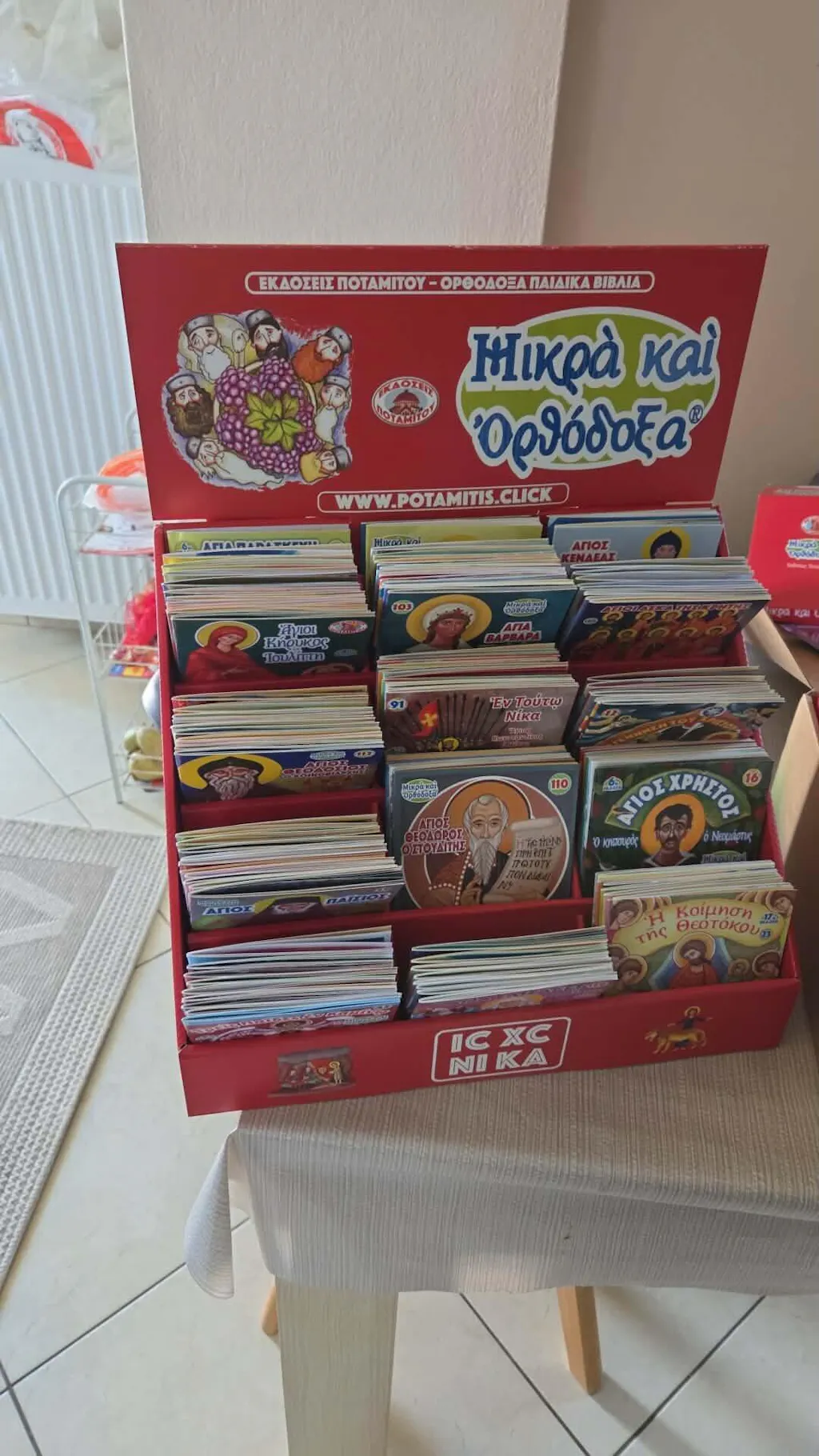 119 (Ἐκατὸν δεκαεννέα!) βιβλιαράκια τοῦ μεγέθους τῶν παιδικῶν σου χεριῶν! Βιβλιαράκια γεμάτα Ἁγίους καὶ Θαύματα, κείμενα κατανοητά, χρώματα ζωντανὰ καὶ Ἁγιογραφίες Ὀρθόδοξες, ποὺ σὲ γαληνεύουν!